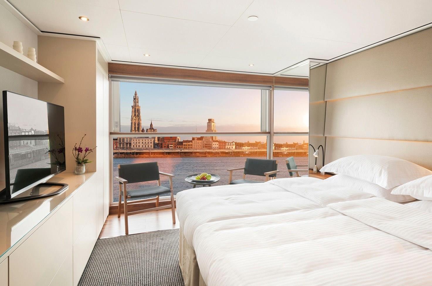Exclusive to Emerald Radiance - our Star-Ship sailing the Douro River - the Riverview Suite is a spacious suite option that has floor-to-ceiling windows and our innovative balcony system.